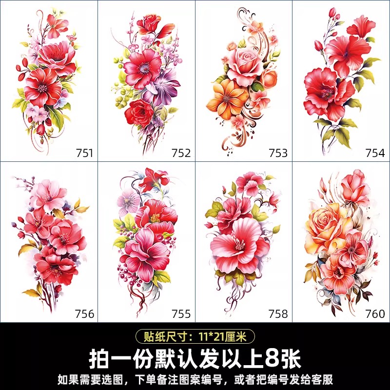 彩色花朵纹身贴纸防水